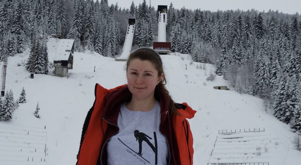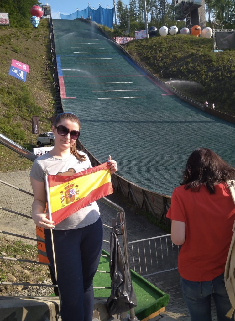 Ski jumping is pretty Euro-centric, and it’s hard for an American to imagine how big and ardent its fan base is, especially in powerhouse countries like Austria, Germany, Norway, Poland, and Slovenia. Today’s storyteller, Kasia Eron, cheers for her home team, Poland, and in support of the Spanish team, but has a special place in her heart for Team USA.