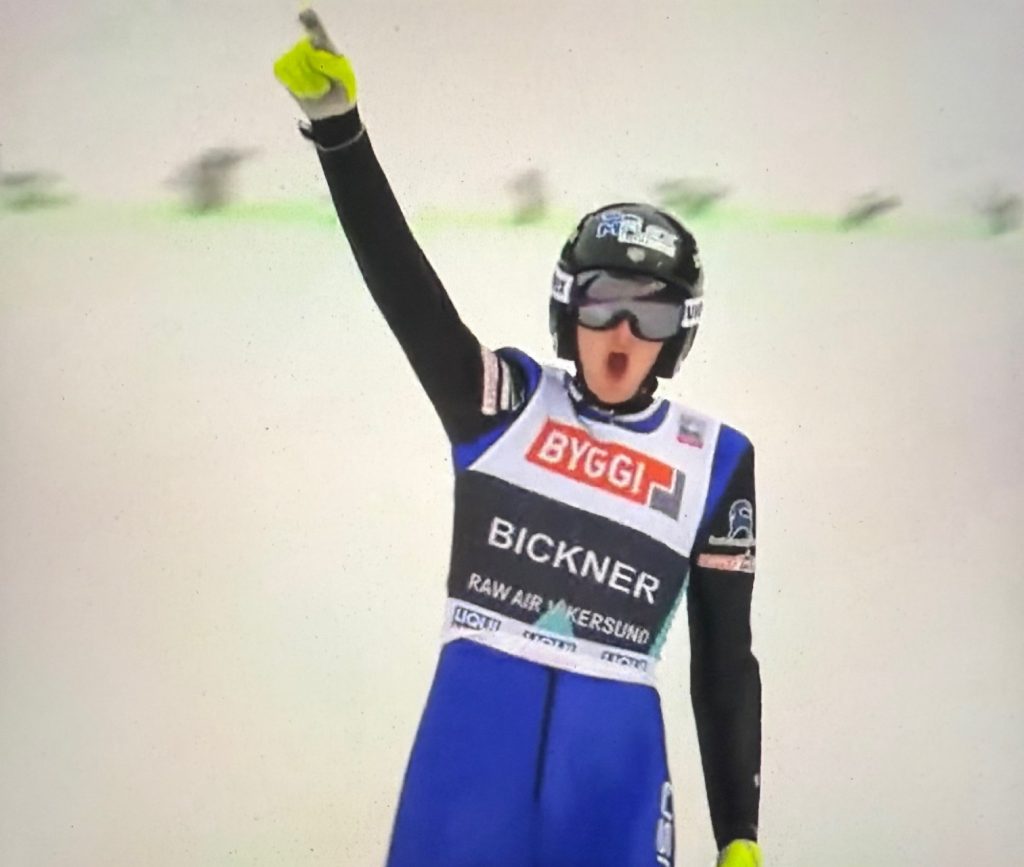I immediately knew this jump was not like the previous one I had that weekend. With significantly more height and pressure under my skis, I fought the whole way to stay on top of it. It was not the most graceful flight, but that didn’t matter. I came into the landing with a deep squat to make sure I could stick that landing. The excitement was overwhelming, and I knew I had just accomplished one of my biggest dreams in the sport. A few seconds later, the scoreboard had confirmed it. 244.5 meters! Nothing (not even a crash) could ruin that day.