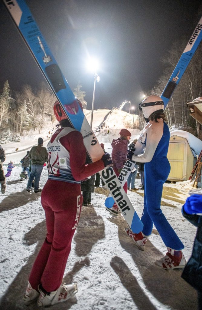 A decade ago, the ISC transformed from a club of aging jumpers into a youth-centered Nordic institution, teaching cross-country skiing, ski jumping, and Nordic combined. We rebuilt the pipeline from the K13 to the K90. We reinvested in coaching, year-round training, and partnership programs. Today, we see athletes like Timothy Ziegler, a Nordic combined skier who grew up soaring off Suicide Hill and is now pursuing graduate studies at Northern Michigan University. Isaac Larson, a senior at Negaunee High School, is training and competing nationally and internationally, carrying the discipline and technical mastery of the modern jumper. Kaija Copenhaver, a junior at Marquette Senior High School, first clicked into tiny jumping skis at age five and now travels across the country and abroad to compete — still returning to Suicide Hill, her home ski jump.