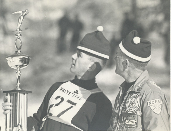 Well, there I was, when up to the top of the slide came a guy I didn’t recognize. It was unusual that I didn’t know the guy, but he was very conspicuous in a few other ways. This guy had brand new jumping skis. A rarity in the days of buying something as special as skis. Not only did he have new skis but he had new ski pants, a new sweater and I think they were shiny new Bass boots. He was conspicuous all right!