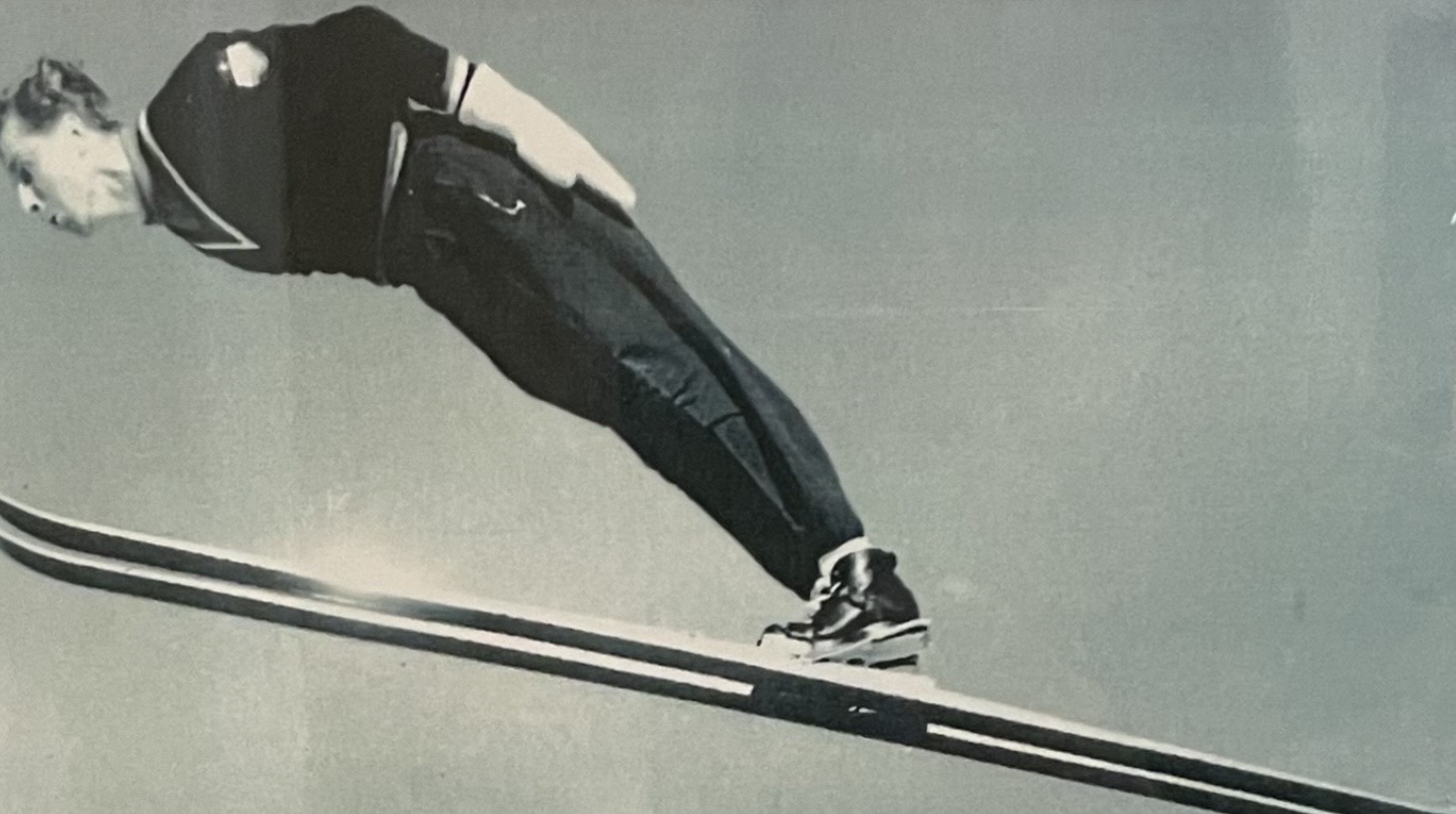 His first skis weren’t store-bought. His father, a Finnish immigrant, made them by hand – boiling wood to bend the tips, hanging them in the basement rafters with weight on the tails until they took shape. Hickory and maple. Bindings made from rubber backstraps cut out of old inner tubes. That Finnish-American heritage, shared by so many ski jumpers in Michigan’s Upper Peninsula, shaped both his upbringing and his approach to the sport. Later, figures like Fritz Tschannen, a Swiss ski jumper who competed in the 1948 Olympics, would come to his elementary school, playing the accordion and telling stories about ski jumping, making the world beyond Iron Mountain feel closer than it was.