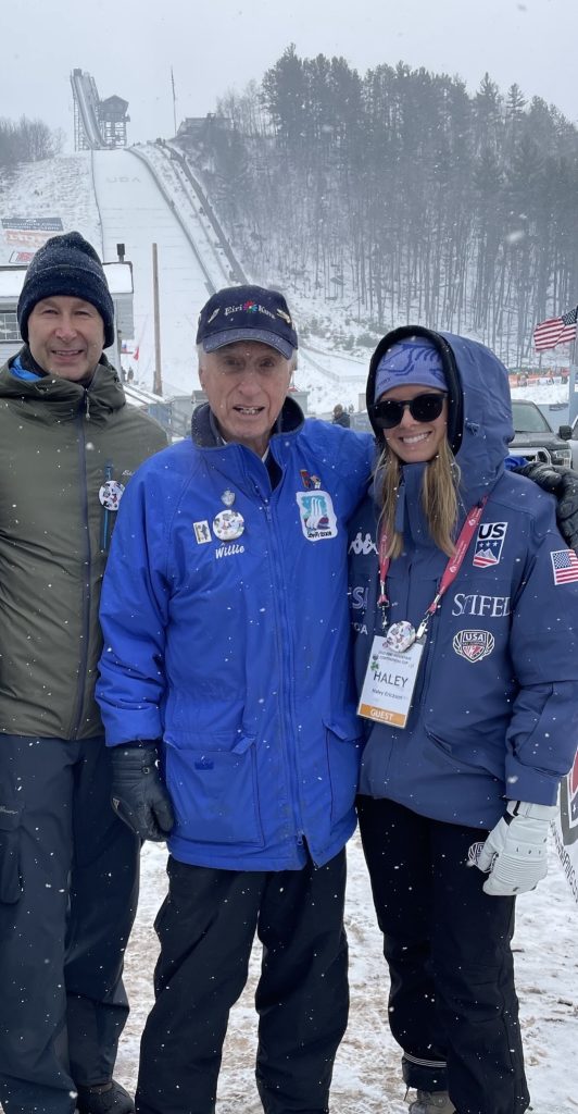 That sense of independence took root early in Iron Mountain, where he was born and raised in a community defined by ski jumping. With Pine Mountain looming above town and the Kiwanis Ski Club at the heart of it all, jumping wasn’t just a sport; it was a way of life for kids, and every neighborhood had its own little jump. As a kid, he even appeared in early newsreel footage of American ski jumping, already part of the fabric of the sport before he fully understood what it would become. In the 1940s, foreign ski jumpers would come to town and visit schools, and young Willie was captivated – not just by how far they flew, but by the idea of ski jumping as a one-man show. “You either did, or you didn’t,” he said.