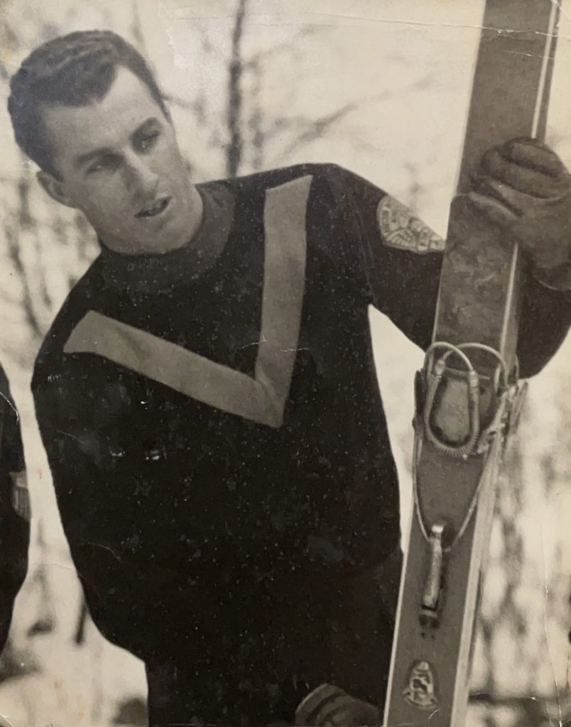 Ski jumping was never the only thing my grandpa was good at. At Northern Michigan University, he was a football player during the school’s best season ever, held the U.P. record in track for the long jump, and earned the nickname “The Flying Flivver with Jack Rabbit Legs.” But even with success in team sports, he chose ski jumping. He liked that it was individual. The accountability. No one else to blame. No one else to thank. Just you and the hill. That mindset carried him to become a three-time U.S. National Champion – first as a junior, then as a Class A/B champion in the late 1950s, and eventually onto the 1960 U.S. Olympic team in Squaw Valley, California.